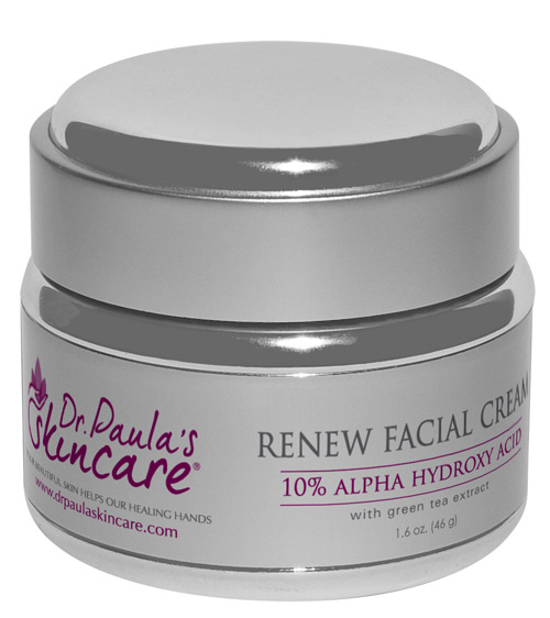 Glycolic acid gently exfoliates the dead cell layer which manifests as fine lines and uneven tones on your skin. When this dead layer is removed, your newer fresher skin will be revealed. With continued use of my Renew facial cream, fine lines fade and clearer, more supple skin is achieved.